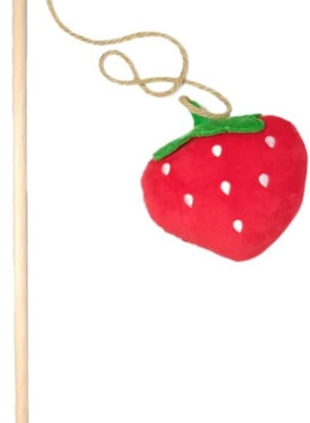 Interactive Wand Cat Toys Strawberry Kitten Teasing Stick Catnip Plush Toy Funny Cat Bite Resistant Stick (Red)