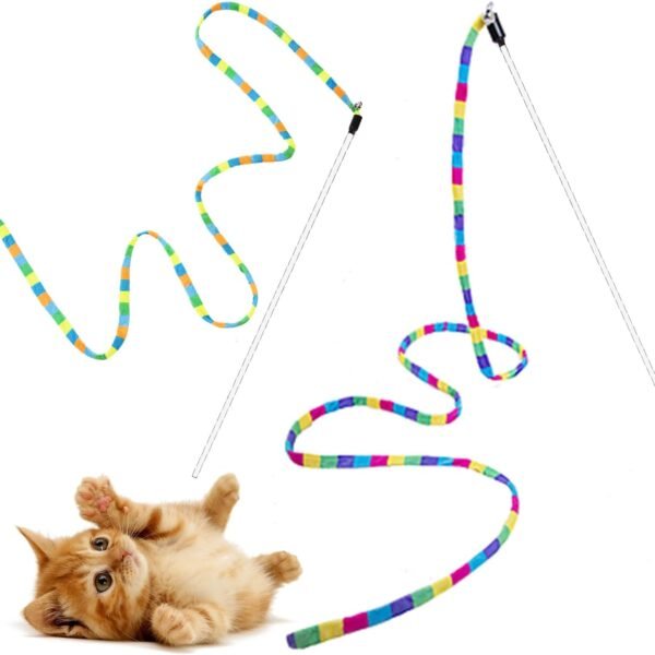 Cat Wand Toys Interactive Kitten Toys for Indoor Cats Colorful Teaser Wand String for Exercise Kitten Stick Kitty Rope Toy Rainbow Ribbon Cat Charmer -2Pcs